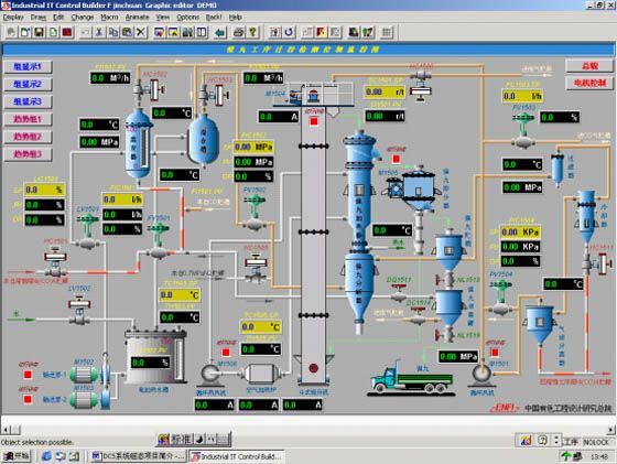 For the main smelting plant building (bottom-flowing smelting furnace, bottom-flowing converting furnace and anode furnace) of the project, Emerson Delta-V series distributed control system is used for the monitoring and control of the process flow, and the software configuration programming is completed by ENFI. Proper detection device and control technology are used for the project according to the process, and standard control system is formed by preparing process control software package, thus improving oxygen bottom-blowing smelting and oxygen bottom-blowing converting process control level. It is popularized in similar projects as a process control package.