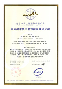 职业健康安全管理体系认证证书