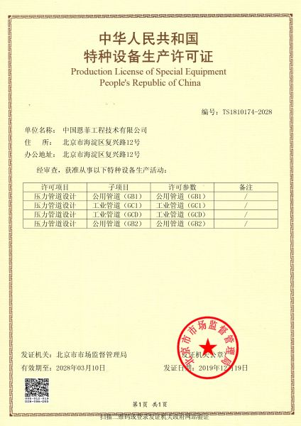 中华人民共和国特种设备生产许可证(压力管道)