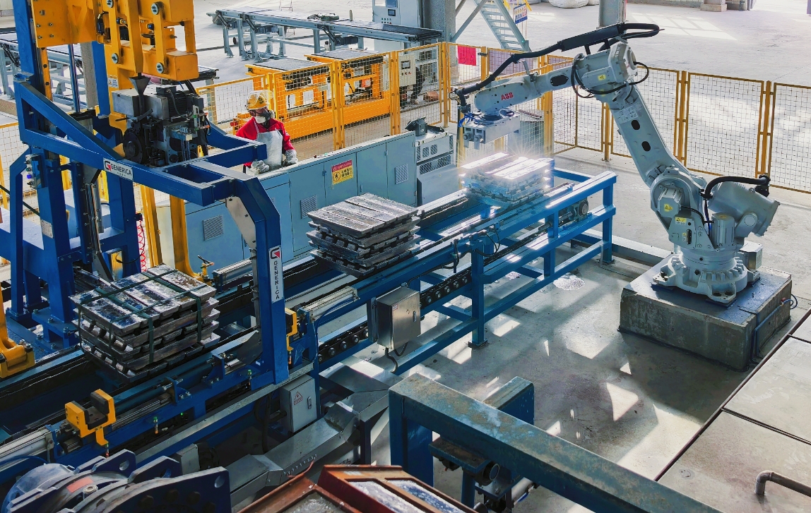 取料机器人打包铅锭
