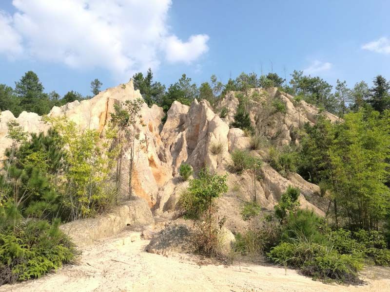 大田总承包项目位于赣县区大田乡夏湖村十八湾,场地面积约38.22万平方米,矿山开采活动导致矿区大面积开采面裸露于地表,矿区植被破坏严重,尾矿在山体中随意堆置且没有任何环保措施,尾矿中的重金属在雨水作用下溶出对矿区土壤和地表水体产生了严重的重金属污染。废弃矿区水土流失严重,导致矿区下游的河流和农田被尾矿砂淹没,对矿区附近居民的生产生活造成严重威胁。本项目采用原位封存阻隔+植物修复综合技术对矿区的尾矿和土壤进行重金属污染治理,利用具有自主知识产权的土壤改良剂对尾矿和污染土壤进行改良,用作植被生长层,实现绿色修复的目的。同时,对矿区内尾砂淤泥严重的河道进行清淤和河堤挡墙建设,改善河道内水体环境;在开采区和尾矿堆积区修建截排水沟,减少雨水下渗量;最后,对矿区进行生态植被恢复,还矿区一片绿水青山。