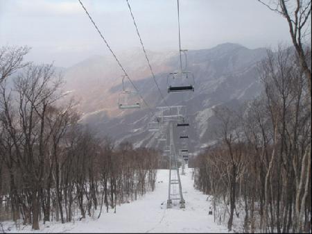 2014年1月竣工完成。索道位于朝鲜江原道元山市马息岭滑雪场,型式为单线循环固定抱索器四人吊椅式,线路水平距离417.747米,高差50米,单向小时运量800人,运行速度为2米/秒。