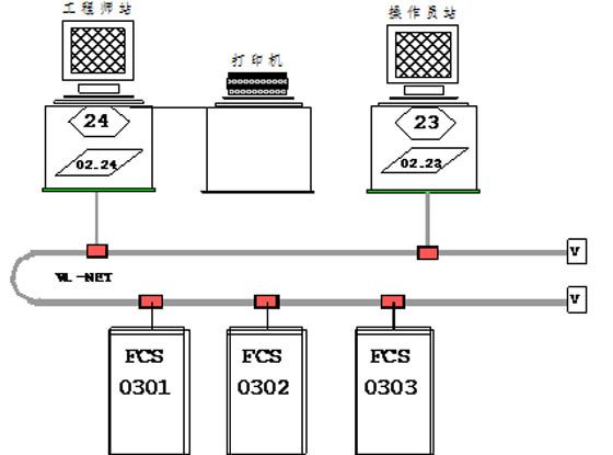 6000KW电站DCS控制系统由三个控制站、一个工程师站及一个操作员站构成。控制系统构成图如下: