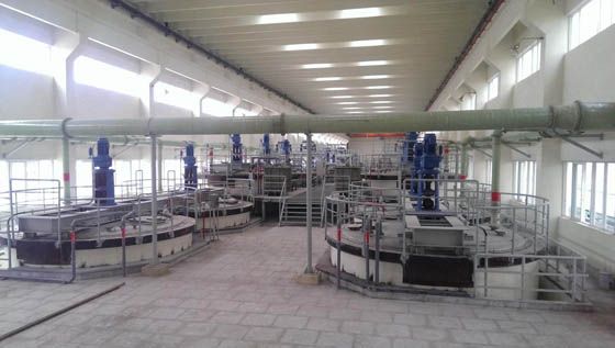 目前,富氧常压直接浸出技术处于国际铅锌冶炼行业领先水平。中国恩菲引进并消化吸收了芬兰OUTOTEC公司硫化锌精矿常压富氧直接浸出技术,并依据实际情况,针对原料与工艺的特点,自主研发了硫化锌精矿与中性浸出渣混合浸出、稀有金属回收、氟氯脱除、沉铁渣的资源化处理等技术,并将其与现有的传统炼锌流程进行有机融合,形成一系列拥有自主知识产权的新工艺、新装备。