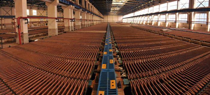 Ø 大冶有色金属集团公司30万t/a电铜,采用大板永久阴极工艺,引进机组,投产时间2012年。