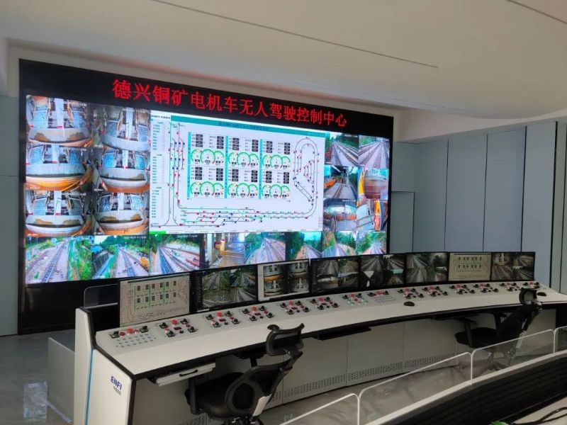 项目翻笼自动对位卸矿、多放矿机连续自动装矿、复杂铁运系统自动运行、自动摘挂钩等多个工艺环节均为国内首创,其运力要求和建设规模在目前国内的无人驾驶系统中也暂无先例,属于复杂智能化系统建设工程。项目通过实施恩菲自主研发的有轨运输无人驾驶系统,结合下沉式5G+MEC网络部署,能够使铁运工段实现全流程运输环节无人化操作以及可视化、数字化集中管理。随着项目的逐步实施,14台无人驾驶电机车将分批投入生产,最终仅保留控制中心当班4人完成整个生产系统的放矿、运输及卸矿设备的远程遥控和监视功能。