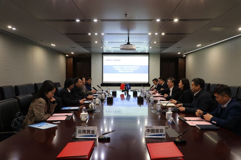 签约仪式上,陆志方对王建强一行的到访表示欢迎,对双方签署战略合作协议、开展深层次的合作表示祝贺。陆志方简要介绍了公司的发展历程,重点阐述了公司在科学研究、工程服务、产业投资三大业务板块和非煤矿山、有色冶金等九个业务单元取得的成绩。他表示,中国恩菲以“有色矿冶国家队、绿色环保排头兵、新兴产业创新者,坚持走高技术高质量发展之路”为战略定位,大力推进“四化转型”,持续提升企业竞争力。一直以来,中国恩菲与云南黄金渊源深厚,共同打造了红牛铜矿、北衙金矿等多个具有行业示范效应的经典工程。未来,希望双方在以往良好的合作基础上,以本次战略合作协议的签订为契机,进一步拓展合作深度,创新合作模式,共同推进高质量发展。