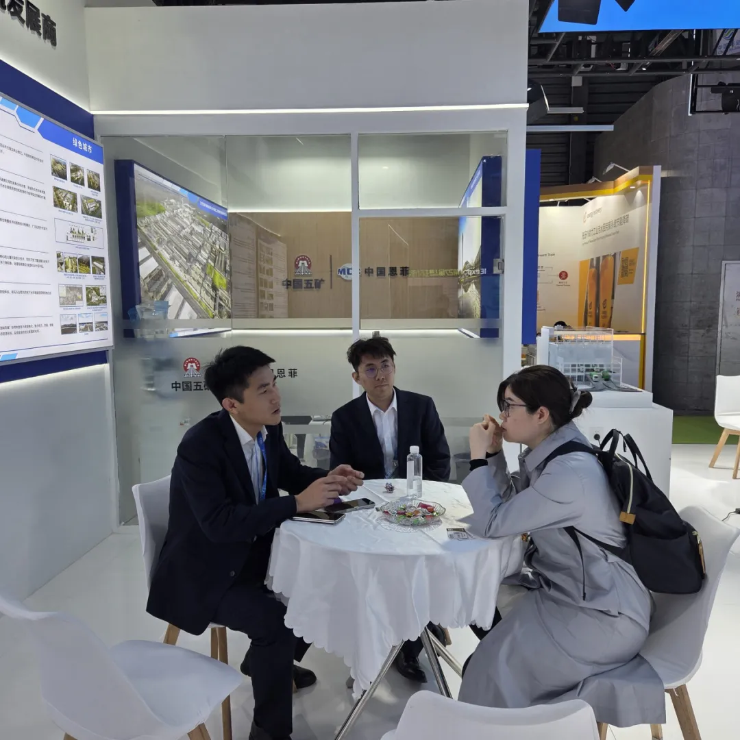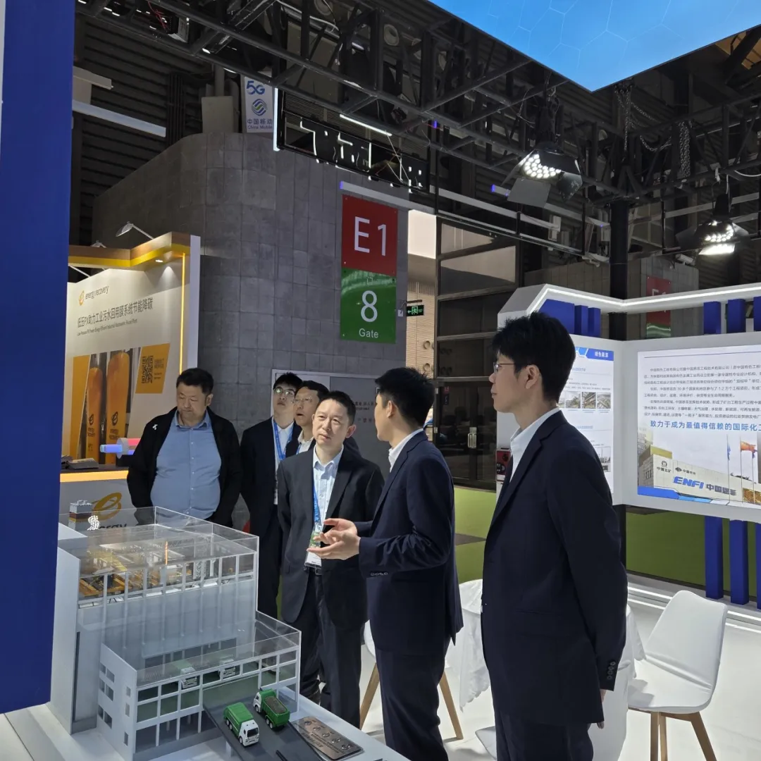 展会期间,北京首创生态环保集团股份有限公司、绿色动力环保集团股份有限公司、江苏省环保集团有限公司和宁波中车新能源科技有限公司莅临中国恩菲展位进行洽谈。公司工作人员与各位参展嘉宾进行了深入交流,介绍了公司业务与先进技术,并广泛收集了行业最新信息动态。