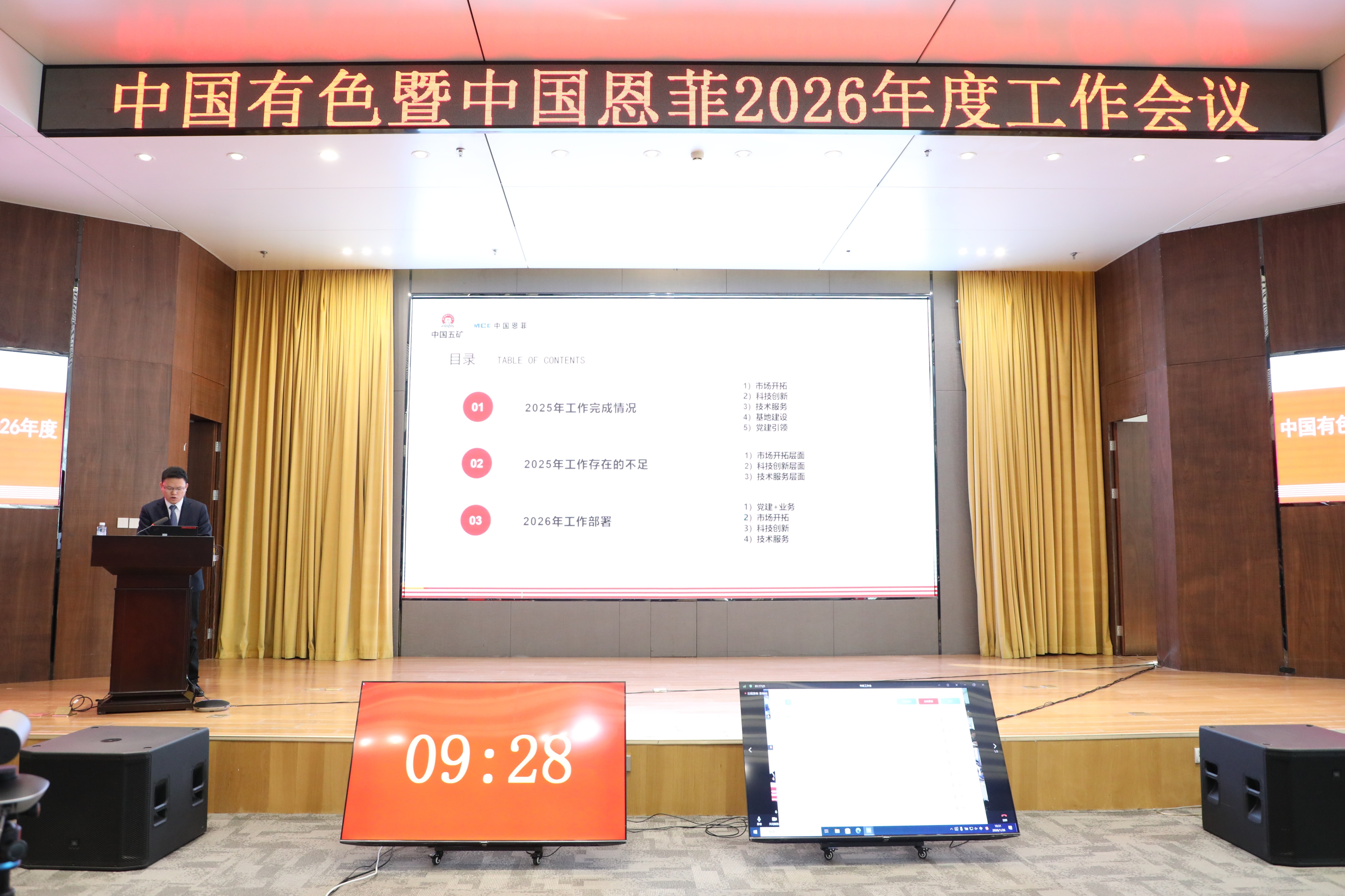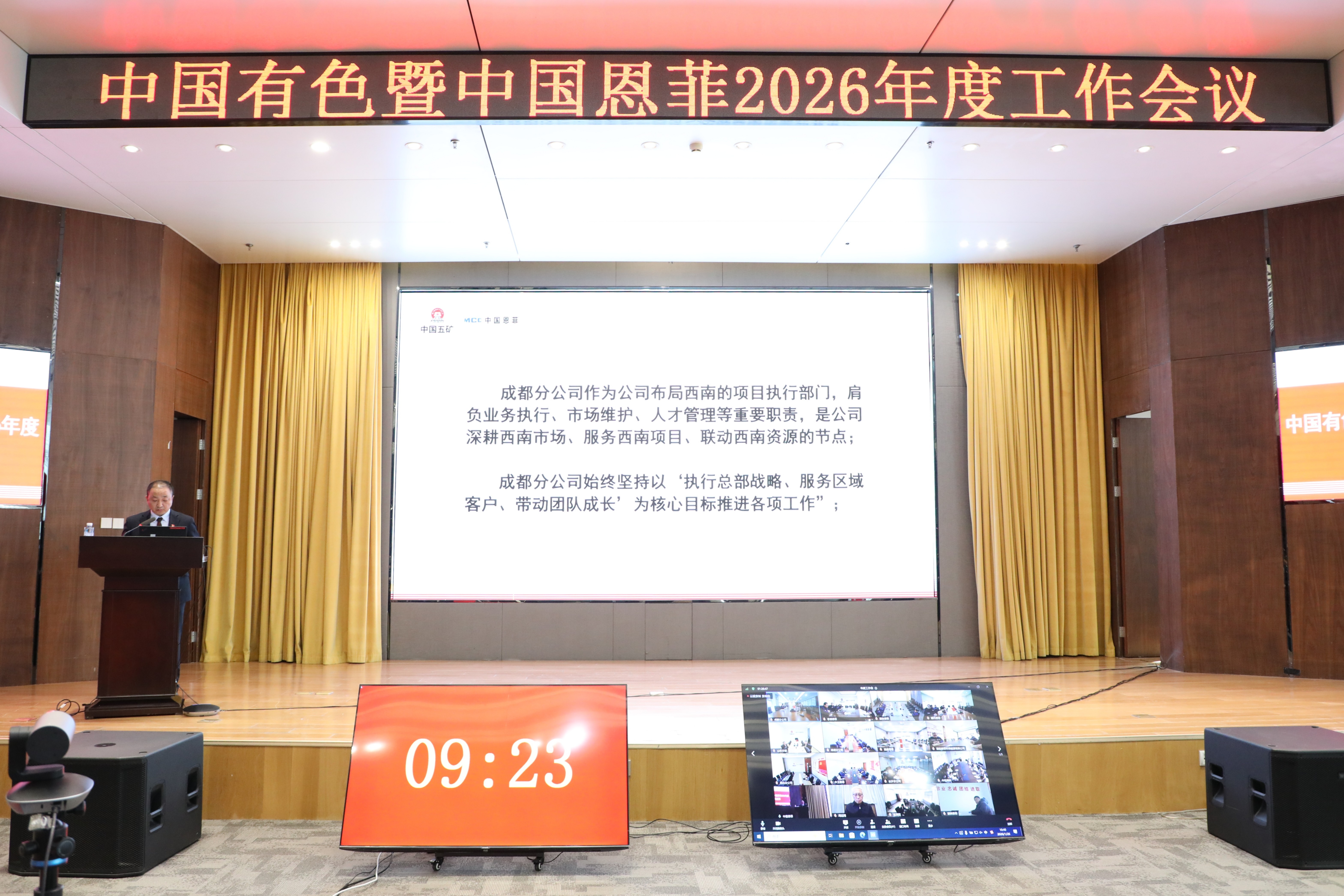 1月26日,中国有色暨中国恩菲召开2026年度工作会议。公司党委书记、董事长刘诚出席会议并讲话,党委副书记、总经理鲍巍作工作报告,总会计师、副总经理张雁镝宣读表彰决定,党委副书记张合文主持会议。公司外部董事视频参会,公司领导班子成员出席会议。